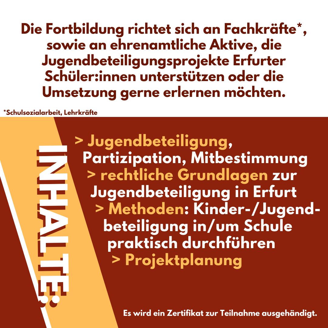 Satzung zur Beteiligung junger Menschen in der Stadt Erfurt), auch wenn die Grundlagen allgemein sind, werden bei Diskussionen und Planungen Erfurter Gegebenheiten berücksichtigt.