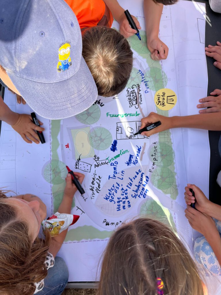 - Kinder und erweitert Jugendliche werden an der Spielplatzplanung beteiligt